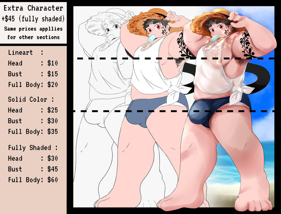 though not a necessary requirement for a commission to be requested, having a reference / sketch / scribble of the pose of the character that you want would help so much!ㅤㅤ